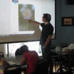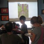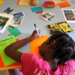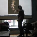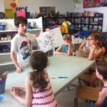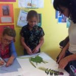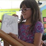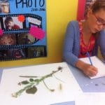 L’écrivaine Hada López a révélé au groupe de jeunes des photos de plantes et arbres vus lors de ses voyages. C’était l’occasion d’imaginer l’histoire de tous ces végétaux assez spéciaux. On a bien confiance en notre groupe de jeunes explorateurs : ils ont beaucoup d’imagination! L’illustrateur Richard Vallerand a montré les pages de son précieux cahier de croquis, de même que son matériel pour dessiner. Richard et Hada ont entre autres présenté deux plantes inventées tout récemment : la plante qui chasse les cauchemars et celle qui grimace pour faire rire les enfants…