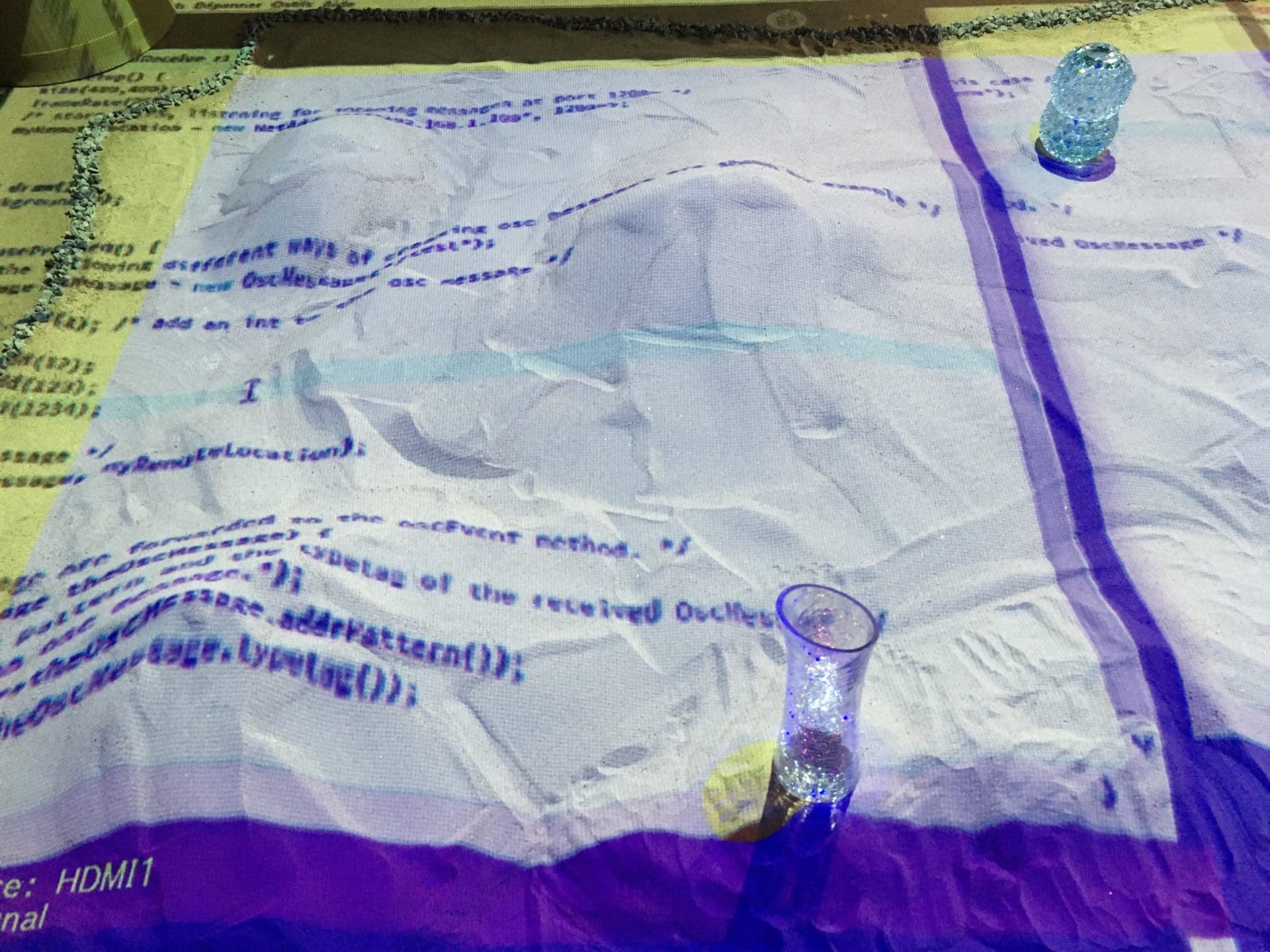 Ajout d’éléments physiques et codés à l’installation, enregistrement du texte de Mickaël Bergeron et beaucoup de visiteurs au MLab Creaform